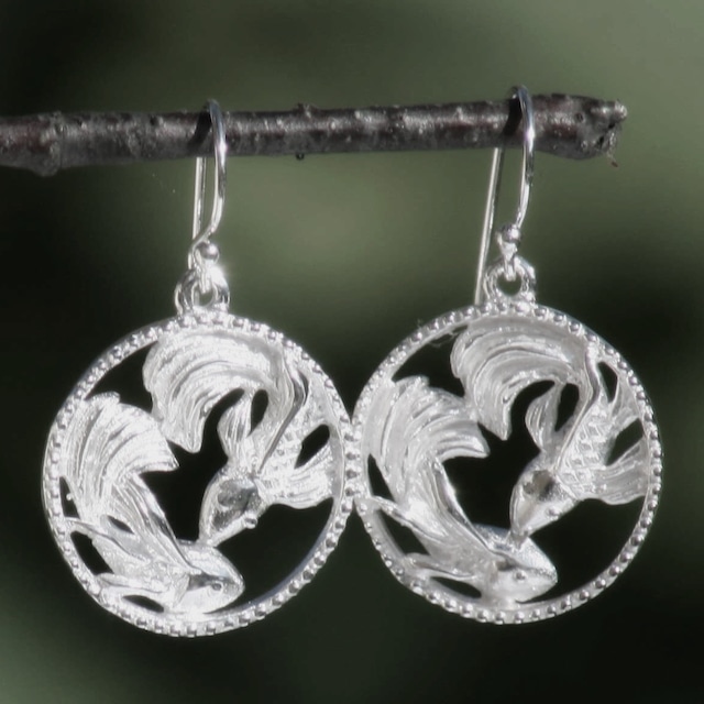 マットシルバー 2㎝ 優しい雰囲気のマットシルバー。品が良いのでフォーマルなs−ンにもピッタリですし、デニムなどを大人かっこよく着られる方にも喜んでいただけると思います。よく見ればキレイな金魚が2匹リングの中で泳いでいて、つけているの見た人は、何かな?と気になってしまうような魅力があります☆ピアスのサイズの2倍の大きさのネックレスもございますので見てみてください♪