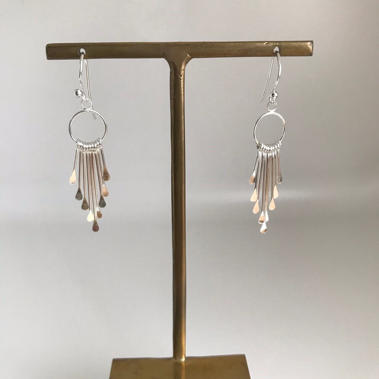 シルバーならではのシンプルな印象ながら、珍しいデザインでよいアクセントになってくれるピアスです。大きすぎず小さすぎず、程よく耳元で個性を出してくれます。どんな洋服にも合わせていただけお役に立てること間違いなしです☆