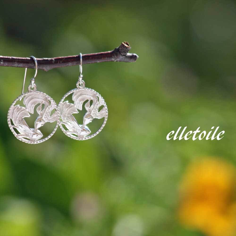 優しい雰囲気のマットシルバー。品が良いのでフォーマルなs−ンにもピッタリですし、デニムなどを大人かっこよく着られる方にも喜んでいただけると思います。よく見ればキレイな金魚が2匹リングの中で泳いでいて、つけているの見た人は、何かな?と気になってしまうような魅力があります☆ピアスのサイズの2倍の大きさのネックレスもございますので見てみてください♪