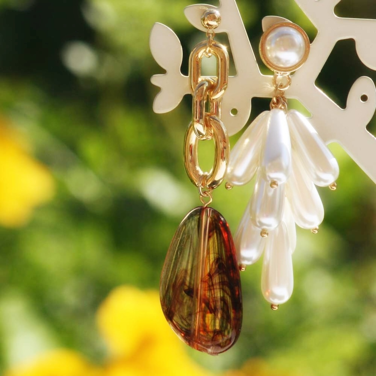 写真通りインパクト大のモードな左右非対称デザインのアシンメトリーピアス。この商品一つで、いつもの服の印象がガラッと変わるります。