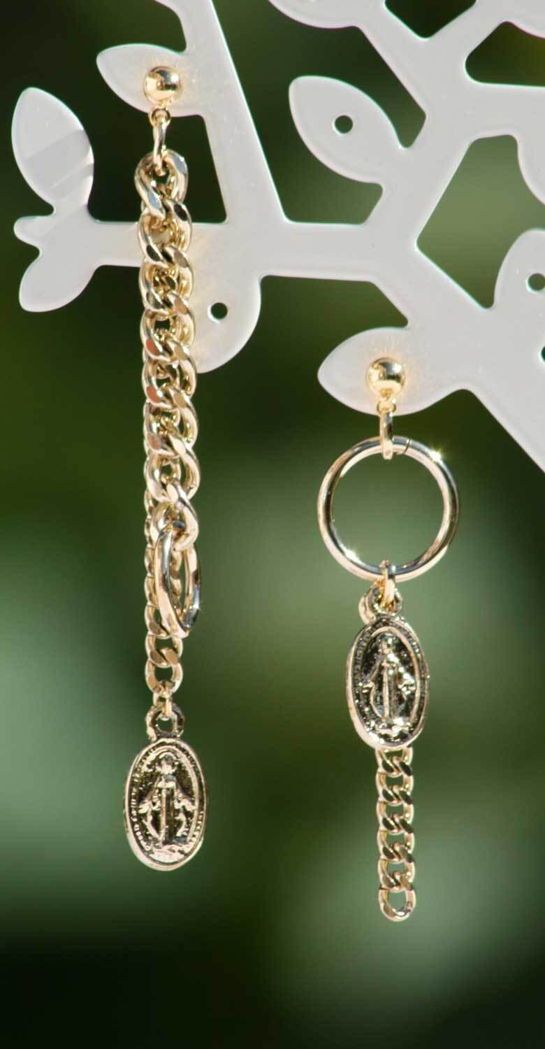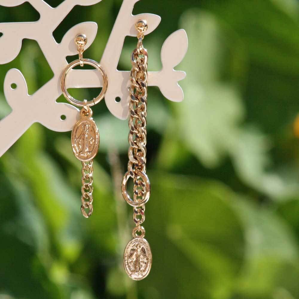 シルバー(color:gold) 左右非対称デザイン、アシンメトリーピアス。