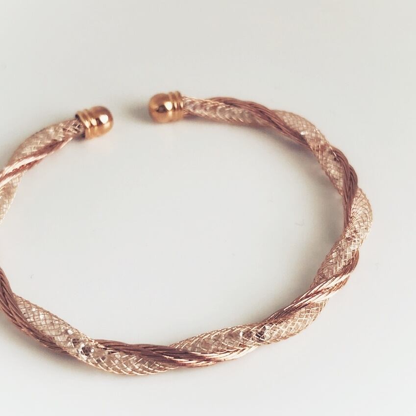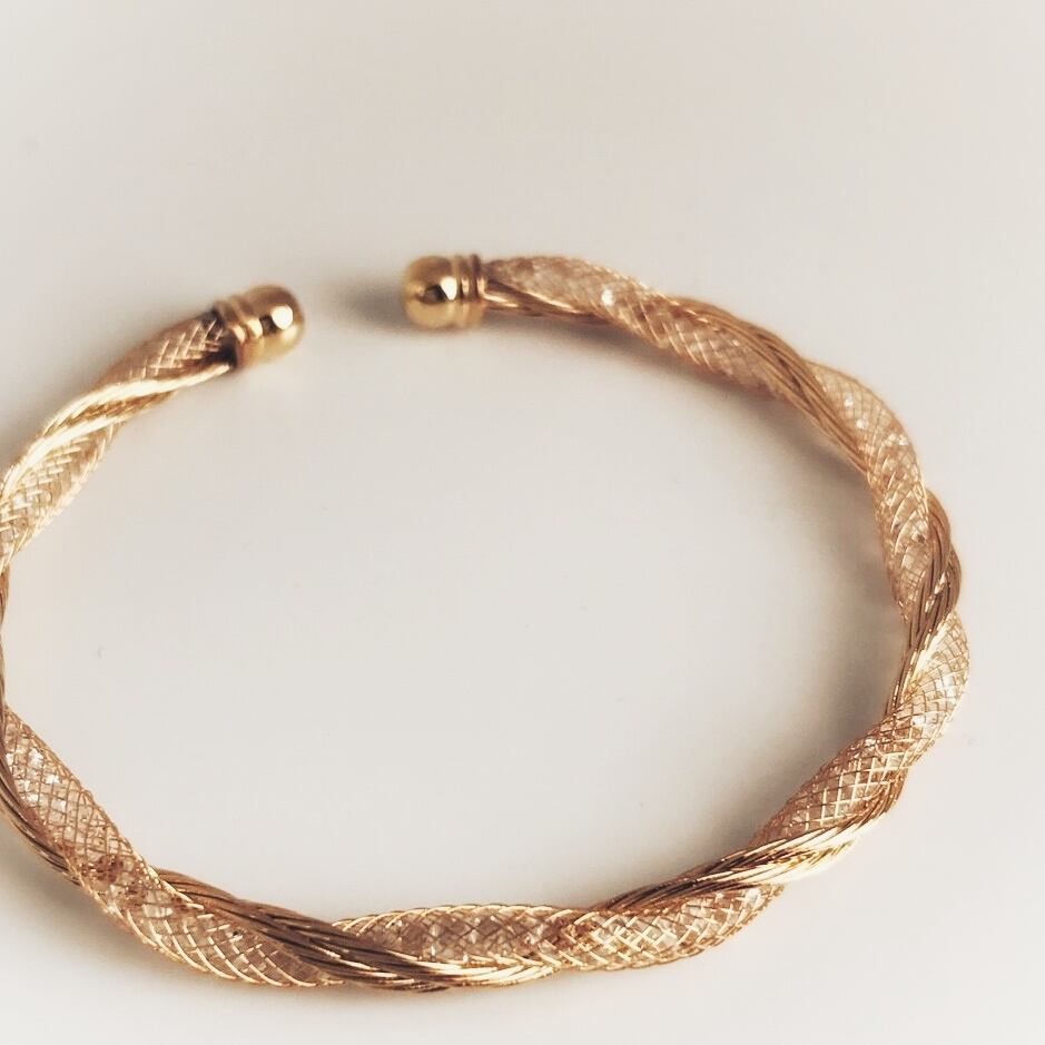 ワイヤチューブの中にストーンが入っていてキラキラしてとてもエレガントなブレスレットです。