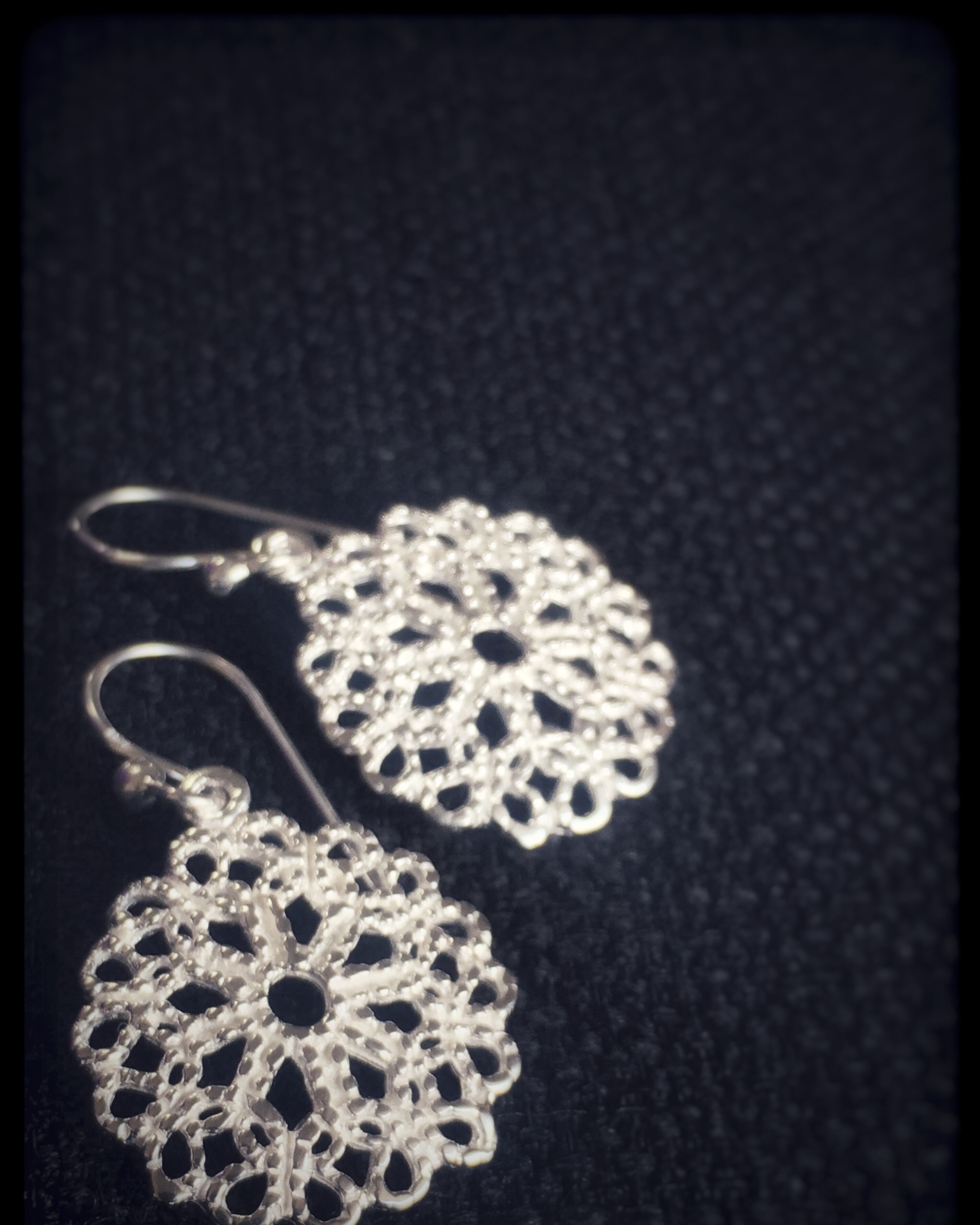 レースをモチーフにした柔らかな雰囲気のあるエレガントなシルバーピアスです。