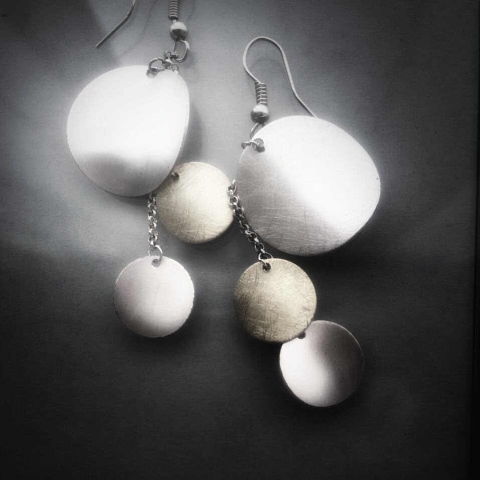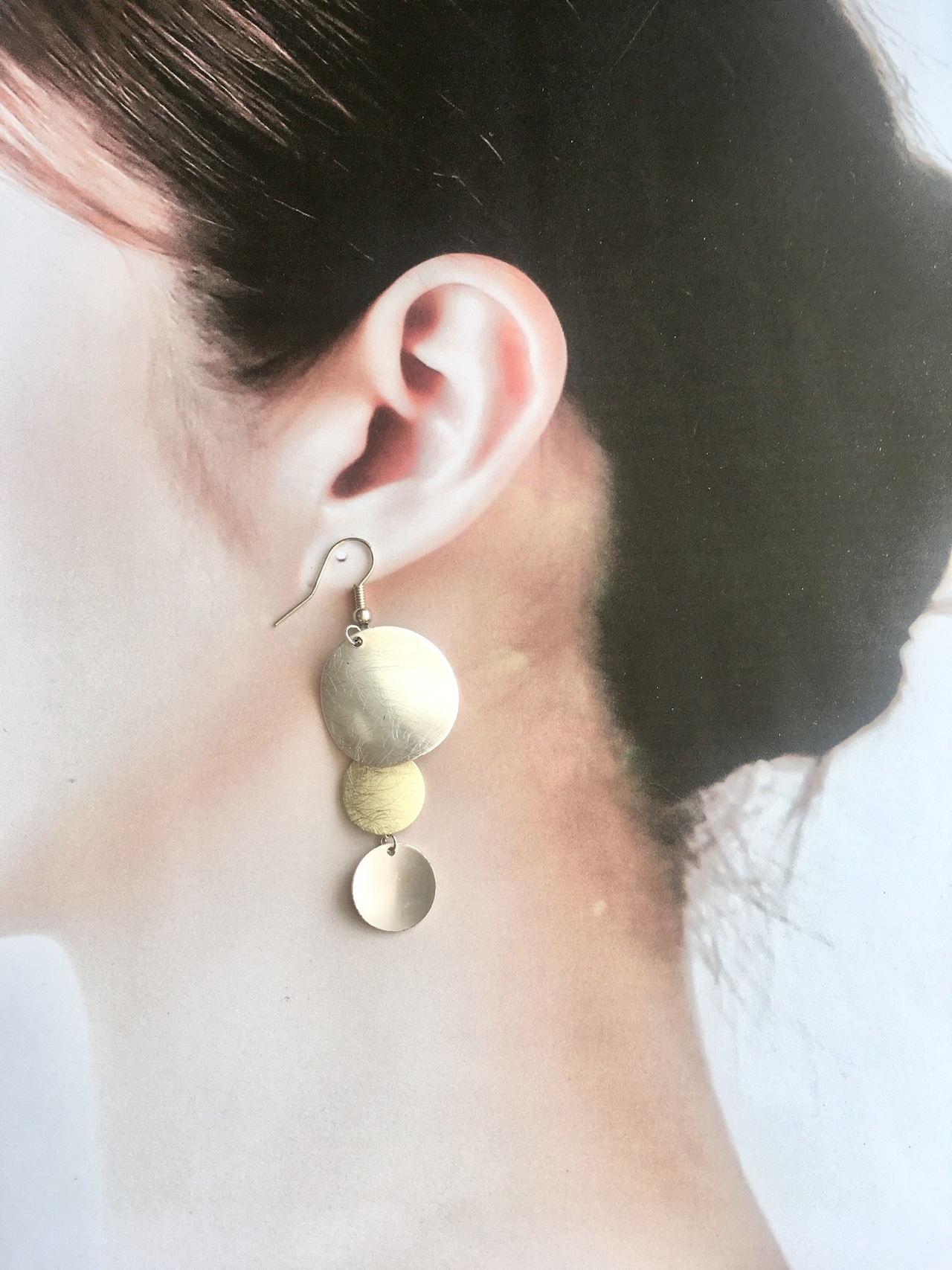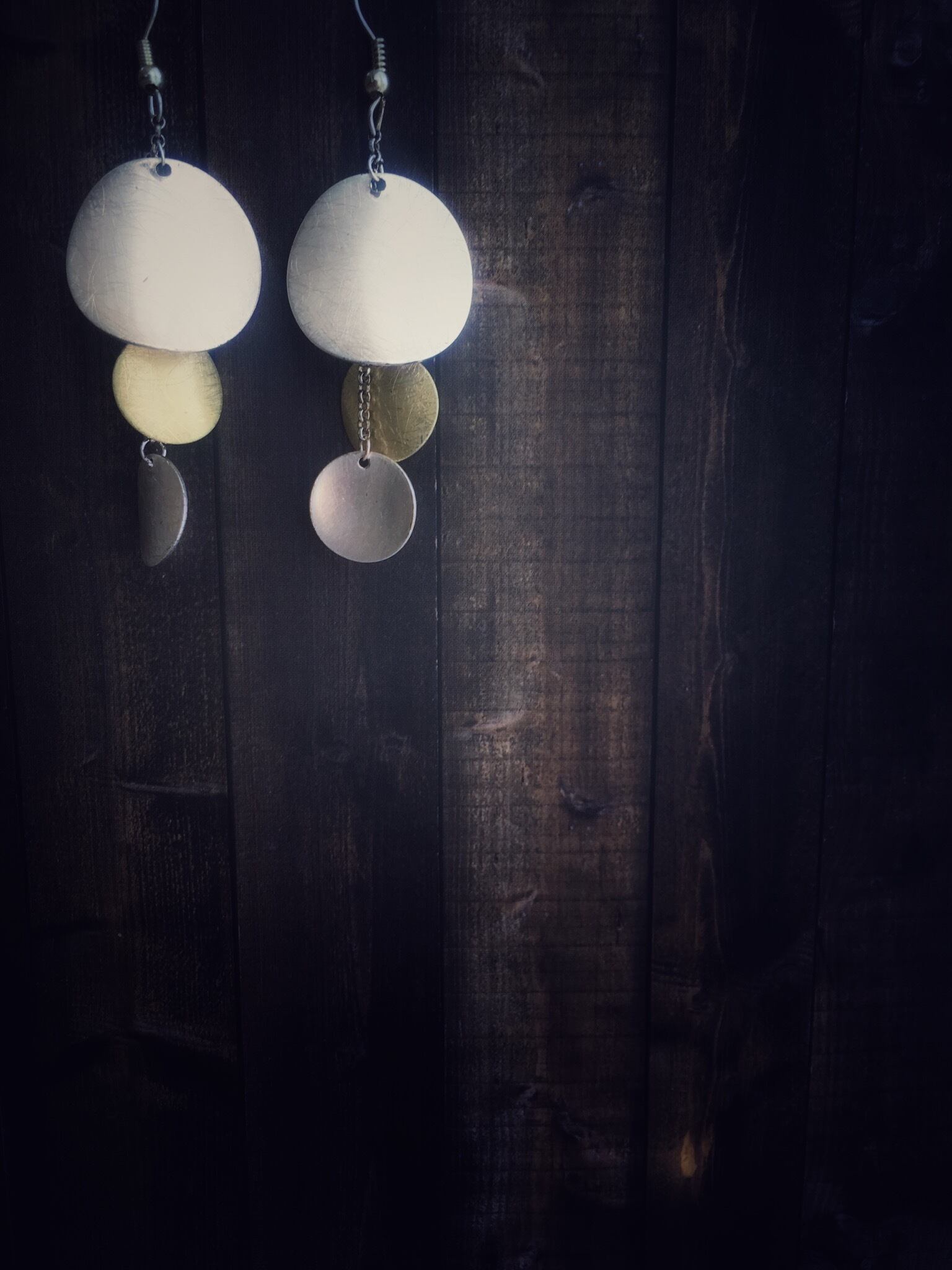 ハンドメイドのブラスとシルバーの風合いがとても良い大人のアクセサリーです。