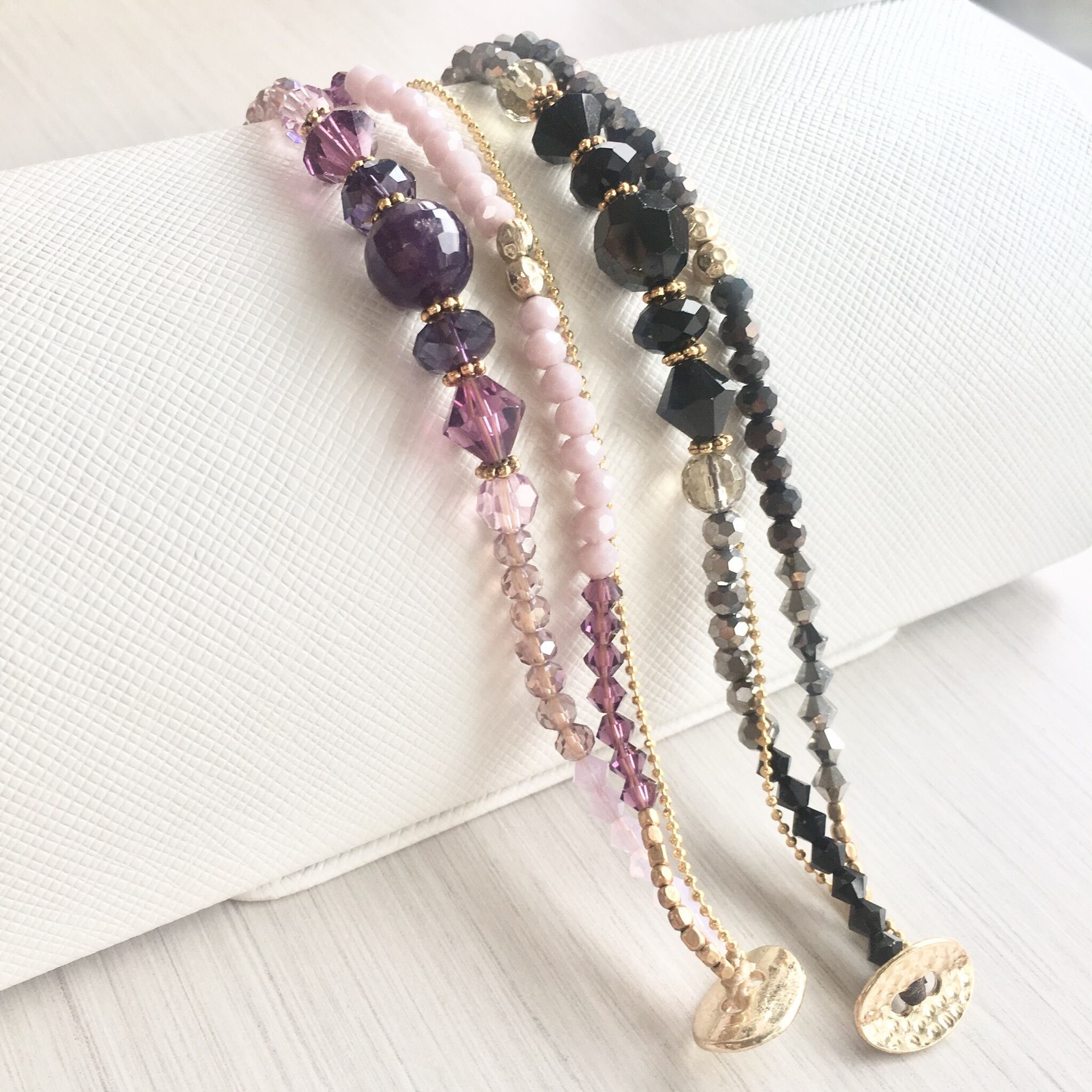 3連と豪華で配色的にも年齢問わず楽しんで頂ける品。出品中の他の天然石のブレスレットと合わせて頂くと更に豪華になります。