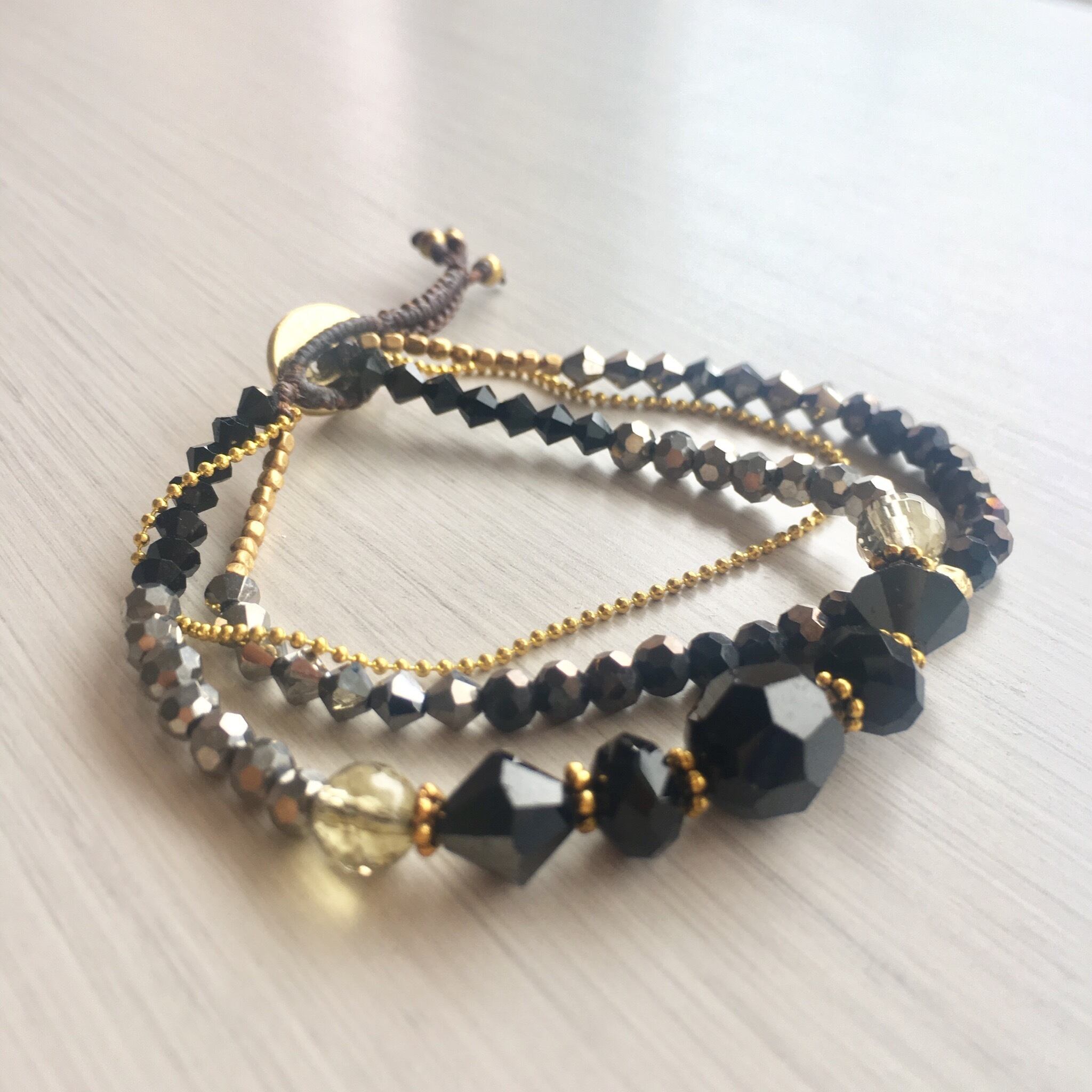 ✴︎チェンマイ✴︎3連天然石ブレスレット(3連ブラック)