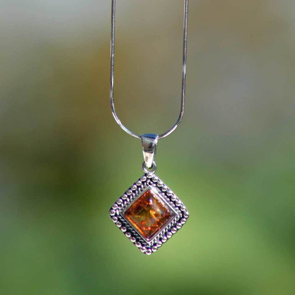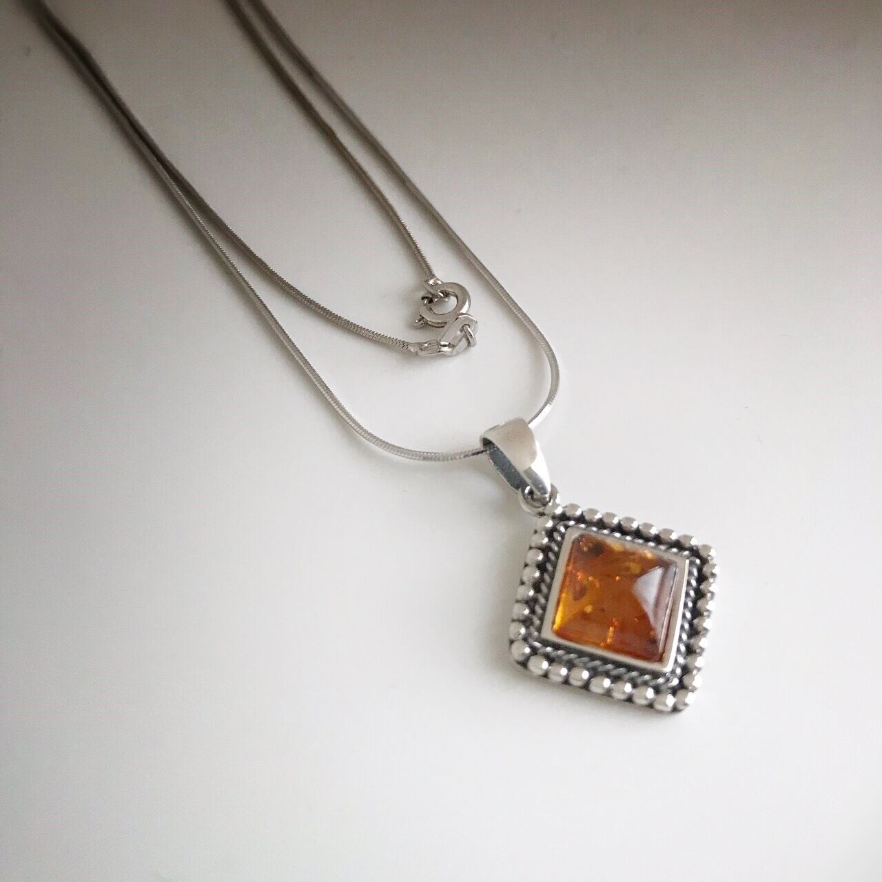 数千万年かけてできた琥珀の風格をぐっと引き立ててくれるクラシックでアンティークなシルバーの淵。