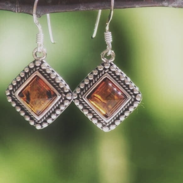 数千万年かけてできた琥珀の風格をぐっと引き立ててくれるクラシックでアンティークなシルバーの淵。